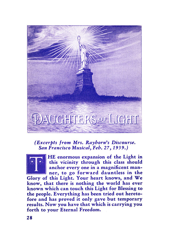 February 27, 1939 Discourse, San Francisco Musical: The enormous expansion of the Light in this vicinity through this class should anchor every one in a magnificent manner, to go forward dauntless in the Glory of this Light. ...
