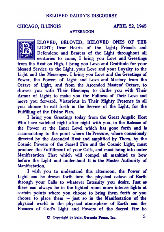Beloved, Beloved, Beloved Ones of the Light; Dear Hearts of the Light; Friends and Defenders; and Bearers of the Light throughout all centuries to come, I bring you Love and Greetings from the Host on High. I bring you Love and Gratitude for your blessed Service to the Light, your Love and your Loyalty to the Light and the Messenger. ...About the Edition