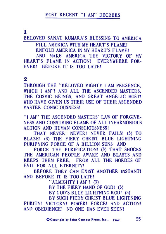 The "Voice of the I AM" monthly Magazine is the Outpouring of the Love, Light, and Illumination from the Beloved Ascended Masters for the enlightenment of all mankind-the Ascended Masters' Instruction on the Fiery Christ Truth of the "Beloved Mighty I AM Presence." The Ascended Masters' Instruction on the Great Laws of Life was first brought forth by the Ascended Master Saint Germain, through His Accredited Messengers, Mr and Mrs GW Ballard. In the early 1930s the Ballards established Saint Germain Foundation and Saint Germain Press, currently a worldwide organization with hundreds of "I AM" Temples and Sanctuaries throughout the world. The "I AM" Activity of Saint Germain Foundation presents this Original Ascended Master Instruction in its pure, unadulterated form, free from human interpretation, in The Voice of the "I AM" monthly Magazine, in the Books of the Saint Germain Series, and in other material released by Saint Germain Foundation and distributed through Saint Germain Press.Associated Items