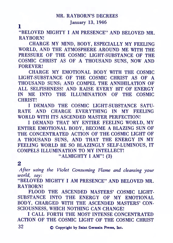 "BELOVED MIGHTY I AM PRESENCE" AND BELOVED MR. RAYBORN!CHARGE MY MIND, BODY, ESPECIALLY MY FEELING WORLD, AND THE ATMOSPHERE AROUND ME WITH THE PRESSURE OF THE COSMIC LIGHT-SUBSTANCE OF THE COSMIC CHRIST AS OF A THOUSAND SUNS, NOW AND FOREVER!About the Edition