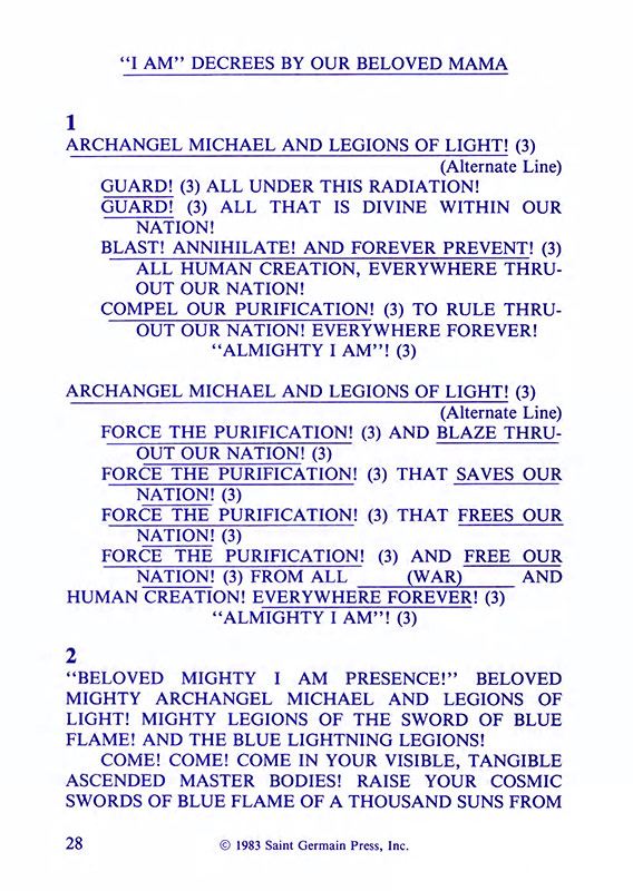 ARCHANGEL MICHAEL AND LEGIONS OF LIGHT! (3) (Alternate Line) GUARD! (3) ALL UNDER THIS RADIATION! GUARD! (3) ALL THAT IS DIVINE WITHIN OUR NATION! BLAST! ANNIHILATE! AND FOREVER PREVENT! (3) ALL HUMAN CREATION, EVERYWHERE THRUOUT OUR NATION!About the Edition