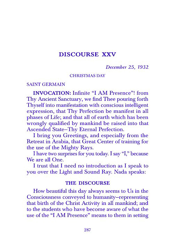 INVOCATION: Infinite I AM Presence! from Thy Ancient Sanctuary, we find Thee pouring forth Thyself into manifestation with conscious intelligent expression, that Thy Perfection be manifest in all phases of Life; and that all of earth which has been wrongly qualified by mankind be raised into that Ascended State-Thy Eternal Perfection. ...