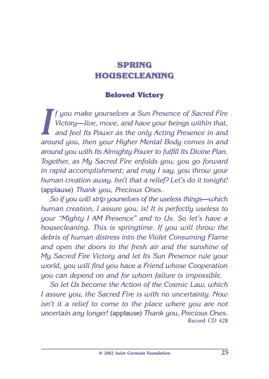 If you make yourselves a Sun Presence of Sacred Fire Victory-live, move, and have your beings within that, and feel Its Power as the only Acting Presence in and around you, then your Higher Mental Body comes in and around you with Its Almighty Power to fulfill Its Divine Plan. ...About the Edition