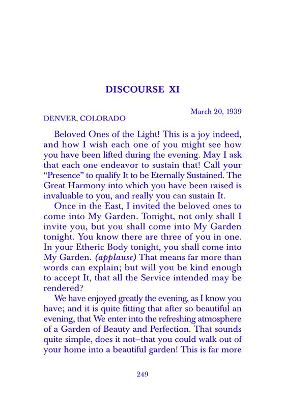 Beloved Ones of the Light! This is a joy indeed, and how I wish each one of you might see how you have been lifted during the evening. May I ask that each one endeavor to sustain that! Call your "Presence" to qualify It to be Eternally Sustained. The Great Harmony into which you have been raised is invaluable to you, and really you can sustain It. Once in the East, I invited the beloved ones to come into My Garden. Tonight, not only shall I invite you, but you shall come into My Garden tonight. ...About the Edition
