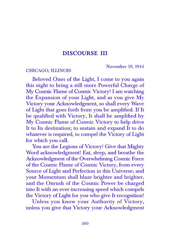 Beloved Ones of the Light, I come to you again this night to bring a still more Powerful Charge of My Cosmic Flame of Cosmic Victory! I am watching the Expansion of your Light, and as you give My Victory your Acknowledgment, so shall every Wave of Light that goes forth from you be amplified. If It be qualified with Victory, It shall be amplified by My Cosmic Flame of Cosmic Victory to help drive It to Its destination; to sustain and expand It to do whatever is required, to compel the Victory of Light for which you call. ...About the Edition