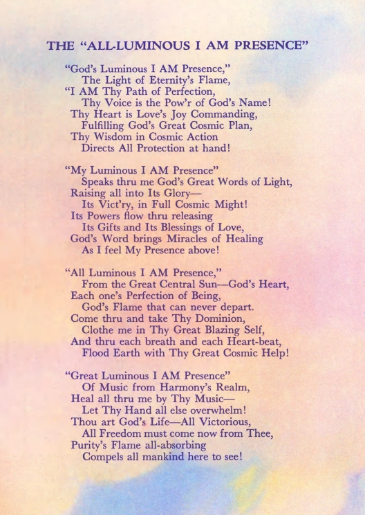 Poem - The All-Luminous "I AM Presence"; Chart Talk; Poem - "I AM" Our Call to the Angels; Poem - "I AM" Angels; Discourse by Lord Maha Chohan; "I AM" Decrees.About the Edition