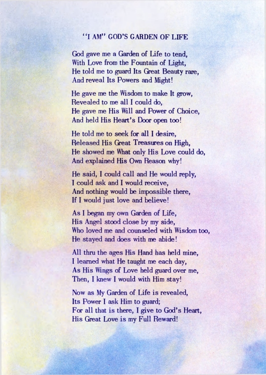 " I AM" GOD'S GARDEN OF LIFEGod gave me a Garden of Life to tend,With… More