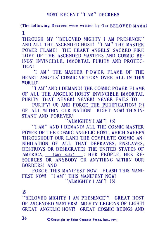 The "Voice of the I AM" monthly Magazine is the Outpouring of the Love, Light, and Illumination from the Beloved Ascended Masters for the enlightenment of all mankind-the Ascended Masters' Instruction on the Fiery Christ Truth of the "Beloved Mighty I AM Presence." The Ascended Masters' Instruction on the Great Laws of Life was first brought forth by the Ascended Master Saint Germain, through His Accredited Messengers, Mr and Mrs GW Ballard. In the early 1930s the Ballards established Saint Germain Foundation and Saint Germain Press, currently a worldwide organization with hundreds of "I AM" Temples and Sanctuaries throughout the world. The "I AM" Activity of Saint Germain Foundation presents this Original Ascended Master Instruction in its pure, unadulterated form, free from human interpretation, in The Voice of the "I AM" monthly Magazine, in the Books of the Saint Germain Series, and in other material released by Saint Germain Foundation and distributed through Saint Germain Press.Associated Items