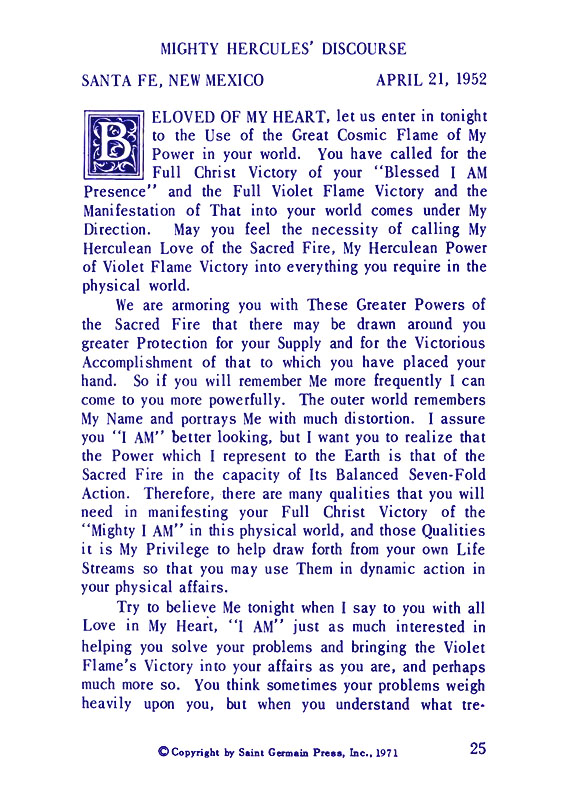 Poem - God's Legions of Victory!; Discourse by Goddess of Justice; Discourse by Hercules; "I AM" Decrees.Cover: Dove of PeaceAbout the Edition