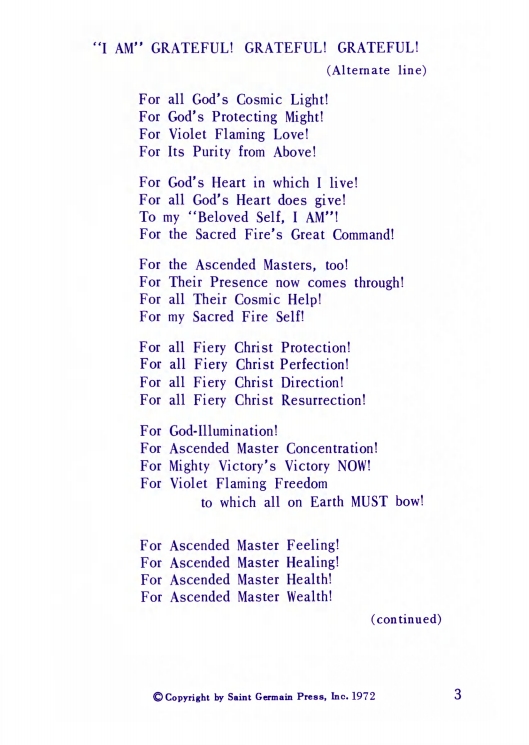 Poem - "I AM" Grateful! Grateful! Grateful!; Discourse by Vesta; Discourse by Lord Maha Chohan; "I AM" Decrees.Cover: Dove of Peace