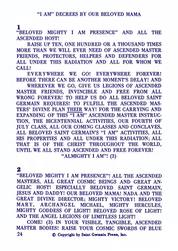 The "Voice of the I AM" monthly Magazine is the Outpouring of the Love, Light, and Illumination from the Beloved Ascended Masters for the enlightenment of all mankind-the Ascended Masters' Instruction on the Fiery Christ Truth of the "Beloved Mighty I AM Presence." The Ascended Masters' Instruction on the Great Laws of Life was first brought forth by the Ascended Master Saint Germain, through His Accredited Messengers, Mr and Mrs GW Ballard. In the early 1930s the Ballards established Saint Germain Foundation and Saint Germain Press, currently a worldwide organization with hundreds of "I AM" Temples and Sanctuaries throughout the world. The "I AM" Activity of Saint Germain Foundation presents this Original Ascended Master Instruction in its pure, unadulterated form, free from human interpretation, in The Voice of the "I AM" monthly Magazine, in the Books of the Saint Germain Series, and in other material released by Saint Germain Foundation and distributed through Saint Germain Press.Associated Items