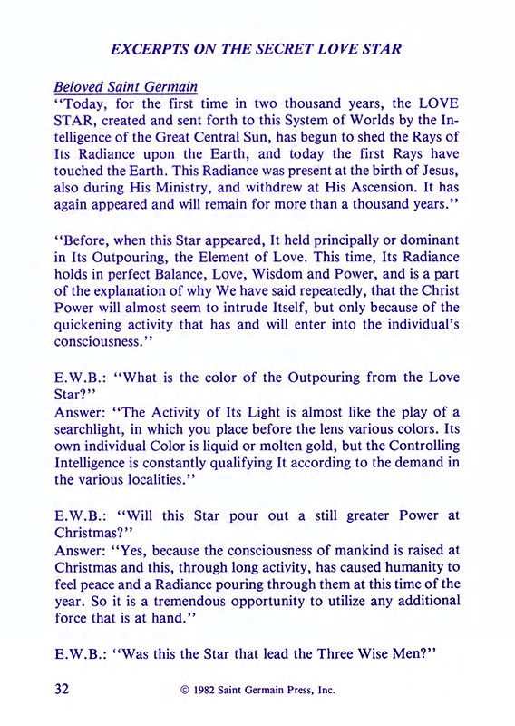 Dedication to Beloved Saint Germain; Poem - Great Secret Love Star!; Discourse by Germain; Discourse by Messenger No. 1; "I AM" Decrees; Excerpts on the Secret Love Star - Question and Answer; Poem - On Christmas Morn.Cover: The Violet Flaming ArmorAbout the Edition