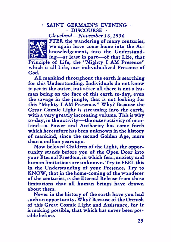 The "Voice of the I AM" monthly Magazine is the Outpouring of the Love, Light, and Illumination from the Beloved Ascended Masters for the enlightenment of all mankind-the Ascended Masters' Instruction on the Fiery Christ Truth of the "Beloved Mighty I AM Presence." The Ascended Masters' Instruction on the Great Laws of Life was first brought forth by the Ascended Master Saint Germain, through His Accredited Messengers, Mr and Mrs GW Ballard. In the early 1930s the Ballards established Saint Germain Foundation and Saint Germain Press, currently a worldwide organization with hundreds of "I AM" Temples and Sanctuaries throughout the world. The "I AM" Activity of Saint Germain Foundation presents this Original Ascended Master Instruction in its pure, unadulterated form, free from human interpretation, in The Voice of the "I AM" monthly Magazine, in the Books of the Saint Germain Series, and in other material released by Saint Germain Foundation and distributed through Saint Germain Press.Associated Items