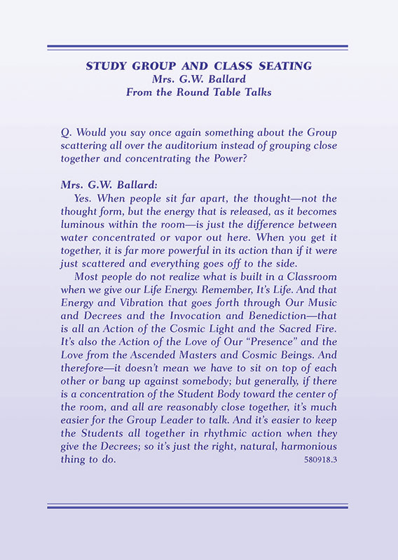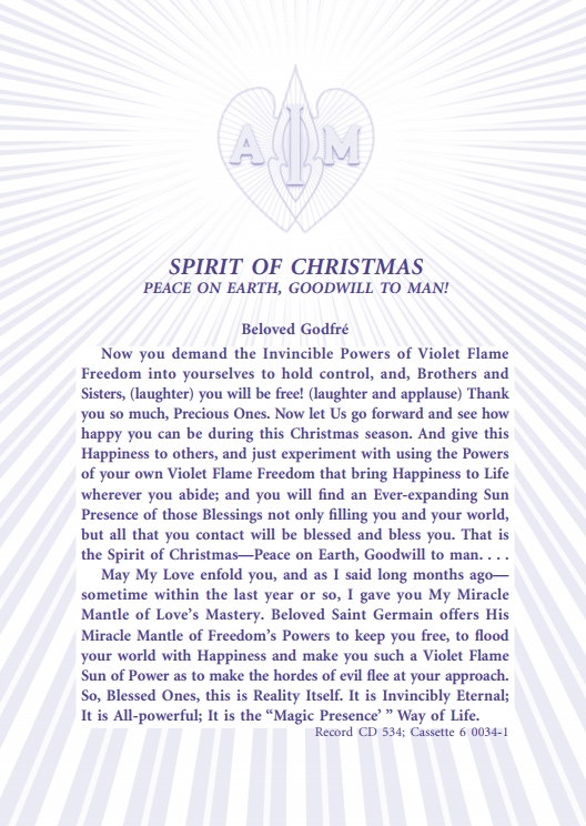 Poem - As Long as Eternity Lasts!; Discourse by Saint Germain; Discourse by Angel Deva of the Jade Temple; Round Table Talks - Study Group and Class Seating; Spirit of Christmas - Beloved Godfre; "I AM" Decrees.About the Edition