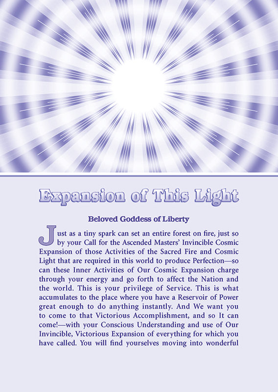 Poem - Freedom of the Light!; Discourse by Nada Rayborn; Freedom - Saint Germain; Nature - Oromasis; Discourse by Great Divine Director; Our Beloved Messengers - Defenders of Freedom; "I AM" Ascended Master Youth - Nada Rayborn; "I AM" COME! Pageant - Saint Germain; Jesus' Outpouring - "I AM" Ascended Master Youth Miracle Conclave; Expansion of This Light - Goddess of Liberty; Gems of Light - Color of the Day; "I AM" Decrees. 2005: Dedicated to FreedomAbout the Edition