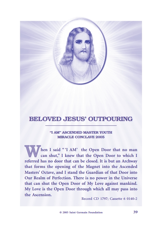 The "Voice of the I AM" monthly Magazine is the Outpouring of the Love, Light, and Illumination from the Beloved Ascended Masters for the enlightenment of all mankind-the Ascended Masters' Instruction on the Fiery Christ Truth of the "Beloved Mighty I AM Presence." The Ascended Masters' Instruction on the Great Laws of Life was first brought forth by the Ascended Master Saint Germain, through His Accredited Messengers, Mr and Mrs GW Ballard. In the early 1930s the Ballards established Saint Germain Foundation and Saint Germain Press, currently a worldwide organization with hundreds of "I AM" Temples and Sanctuaries throughout the world. The "I AM" Activity of Saint Germain Foundation presents this Original Ascended Master Instruction in its pure, unadulterated form, free from human interpretation, in The Voice of the "I AM" monthly Magazine, in the Books of the Saint Germain Series, and in other material released by Saint Germain Foundation and distributed through Saint Germain Press.Associated Items