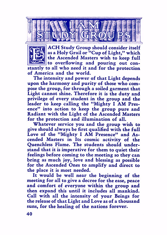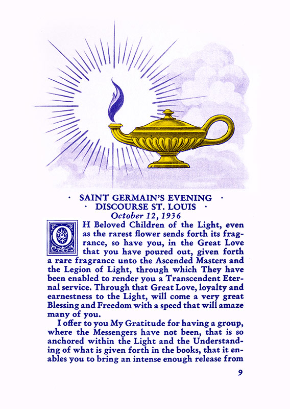 The "Voice of the I AM" monthly Magazine is the Outpouring of the Love, Light, and Illumination from the Beloved Ascended Masters for the enlightenment of all mankind-the Ascended Masters' Instruction on the Fiery Christ Truth of the "Beloved Mighty I AM Presence." The Ascended Masters' Instruction on the Great Laws of Life was first brought forth by the Ascended Master Saint Germain, through His Accredited Messengers, Mr and Mrs GW Ballard. In the early 1930s the Ballards established Saint Germain Foundation and Saint Germain Press, currently a worldwide organization with hundreds of "I AM" Temples and Sanctuaries throughout the world. The "I AM" Activity of Saint Germain Foundation presents this Original Ascended Master Instruction in its pure, unadulterated form, free from human interpretation, in The Voice of the "I AM" monthly Magazine, in the Books of the Saint Germain Series, and in other material released by Saint Germain Foundation and distributed through Saint Germain Press.