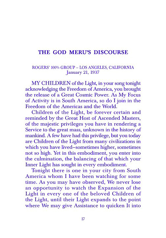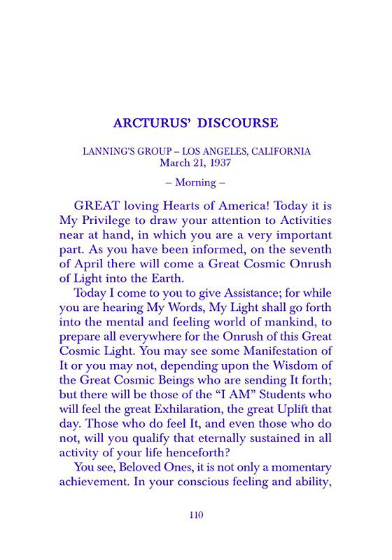 The Ascended Masters who dictated these Discourses have each one given Their own Radiance in and through the Words themselves. The Great Ascended Masters and these Dictations are the Mightiest Law, Reality, and Blessing that have ever come to mankind in hundreds of years. They contain only Perfection for all. They radiate the Feeling to the Student and reader that he too may become Master of himself and his world and rise into the Full Freedom and Victory of the Ascension.